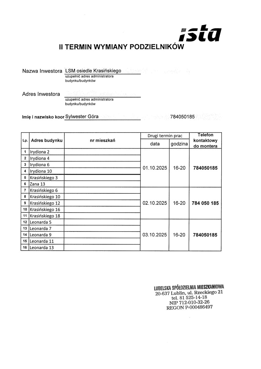 Strona główna Krasińskiego Harmonogram wymiany podzielników centralnego ogrzewania – II termin