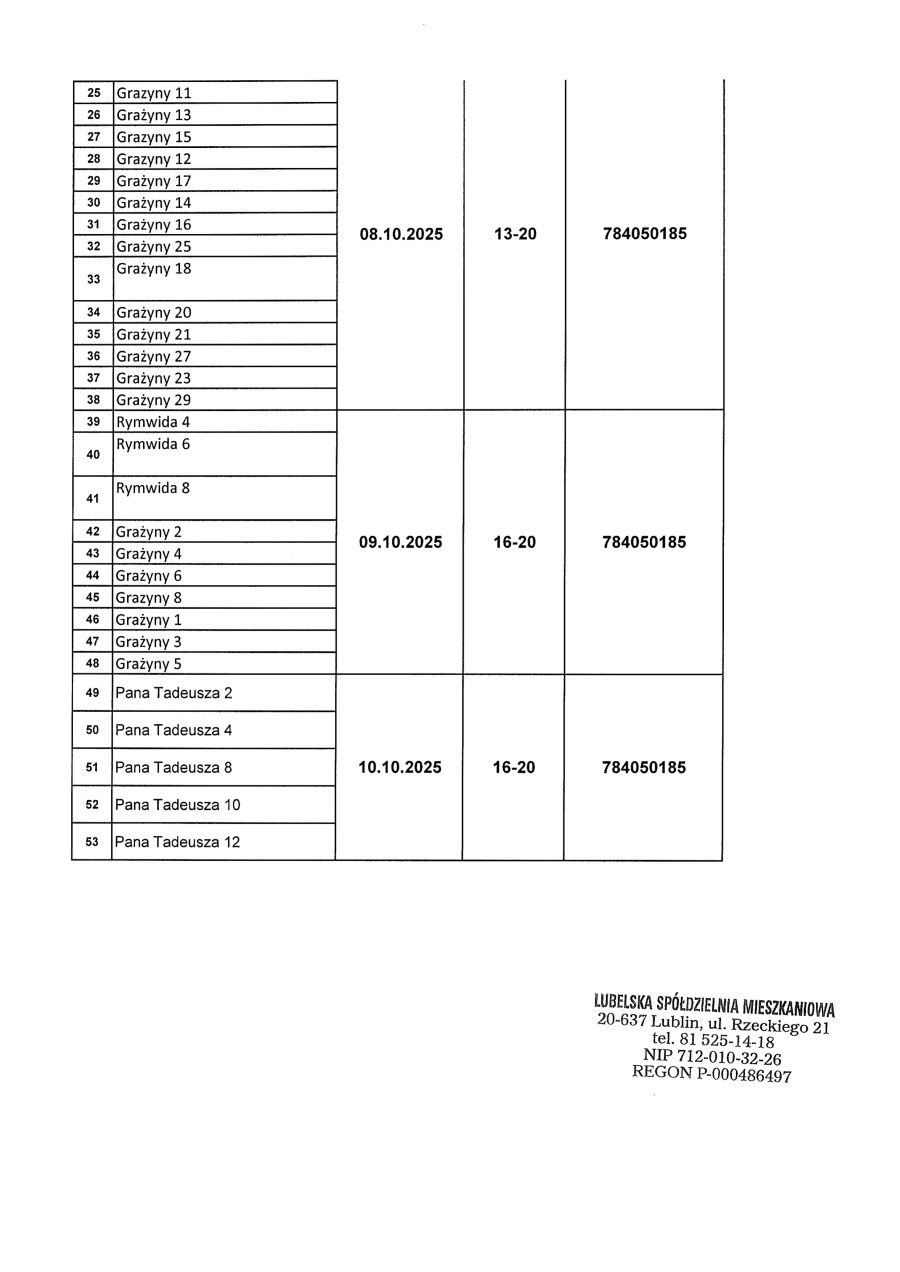 Kontakt z poszczególnymi działami Lubelskiej Spółdzielni Mieszkaniowej