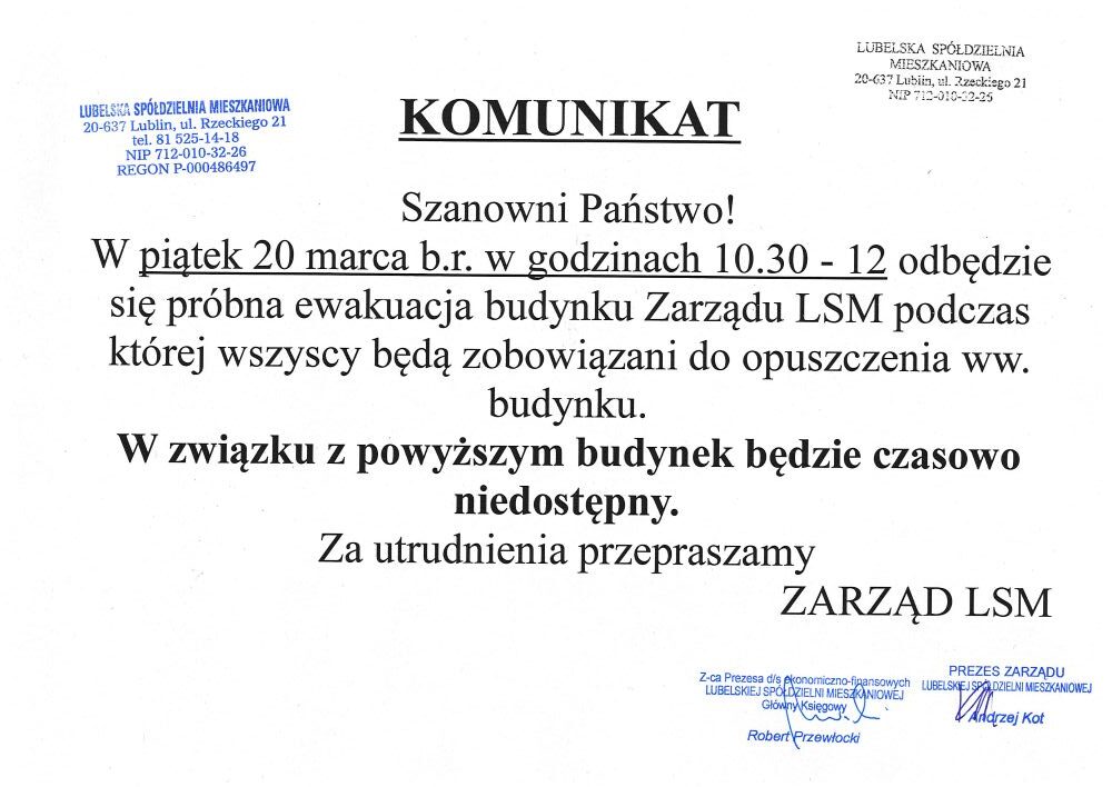 • Kontakt z poszczególnymi działami Lubelskiej Spółdzielni Mieszkaniowej