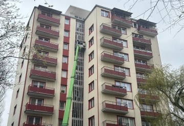 Prace pielęgnacyjne na drzewach oraz konserwacyjne na budynkach mieszkalnych przy użyciu zwyżki 8 maja, 2025