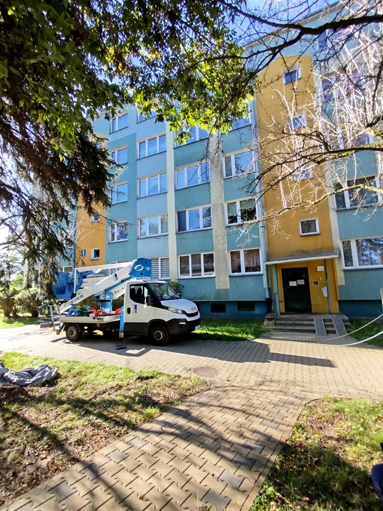 Prace związane z myciem elewacji budynku przy ul. M. Brzeskiej 9