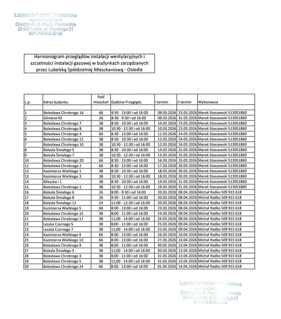 • Kontakt z poszczególnymi działami Lubelskiej Spółdzielni Mieszkaniowej