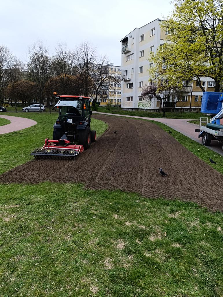 11 – Pielęgnacja zieleni na osiedlu, podcinania, nasadzenia, koszenie trawników, wywóz wiatrołomów.